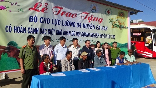 Nhằm đẩy mạnh phong trào đền ơn, đáp nghĩa, góp phần hỗ trợ vật chất, tinh thần, cải thiện cuộc sống cho quần chúng tích cực trong phong trào toàn dân bảo vệ an ninh Tổ quốc trên địa bàn huyện, vừa qua Công an huyện Ea Kar đã phối hợp với Hội doanh nghiệp huyện tiến hành bàn giao 04 con bò trưởng thành cho 04 hộ gia đình quần chúng có hoàn cảnh khó khăn tại thị trấn Ea Kar, xã Ea Đar và xã Ea Sar.
