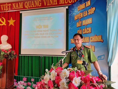Sáng ngày 28/8/2020, Công an huyện Ea Súp tổ chức Hội thi với chủ đề “Ứng dụng công nghệ thông tin nâng cao hiệu quả cải cách hành chính năm 2020”. Đồng chí Thượng tá Cao Tiến Phu - Trưởng Công an huyện, Trưởng Ban Tổ chức Hội thi; Ban Giám khảo gồm các đồng chí lãnh đạo Công an huyện, đại diện lãnh đạo Phòng Văn hoá - Thông tin huyện và chỉ huy Đội Pháp chế và quản lý khoa học, Phòng Tham mưu Công an tỉnh. Tham gia Hội thi có 4 Đội, thành viên là cán bộ, chiến sĩ thuộc các Đội nghiệp vụ của Công an huyện.