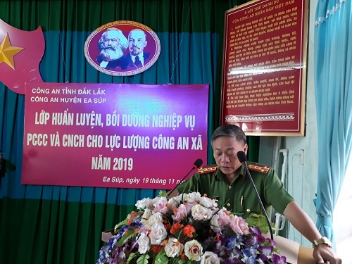 Nhằm củng cố lực lượng PCCC ngay tại địa bàn cơ sở, phát huy tốt vai trò tham mưu cho cấp uỷ, chính quyền địa phương trong công tác PCCC, đảm bảo thực hiện đúng chức trách, nhiệm vụ trong công tác quản lý nhà nước về PCCC ngay tại đơn vị hành chính cấp xã, phát huy tốt vai trò nòng cốt trong việc thực hiện công tác PCCC và CNCH ngay tại địa bàn cơ sở, trong 04 ngày (từ ngày 19/11 đến ngày 22/11/2019) Công an huyện Ea Súp đã phối hợp với Phòng Cảnh sát PCCC&CNCH Công an tỉnh tổ chức mở 02 lớp huấn luyện, bồi dưỡng nghiệp vụ PCCC và CNCH cho lực lượng Công an xã năm 2019.