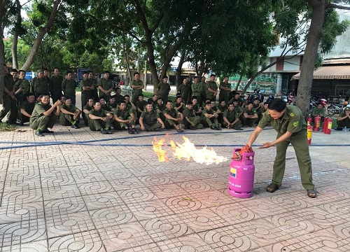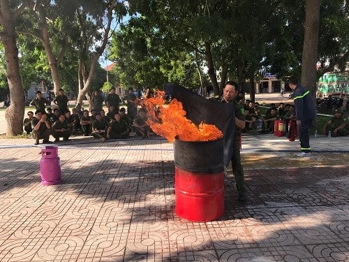 Thực hành dùng bình chữa cháy xách tay dập tắt đám cháy