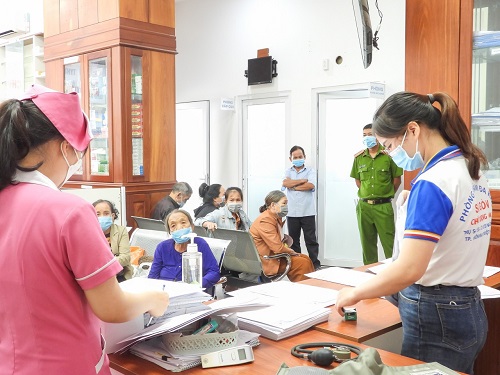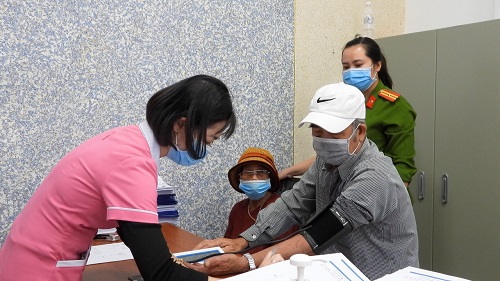 Nhân viên y tế ân cần khám và tư vấn sức khỏe cho Nhân dân