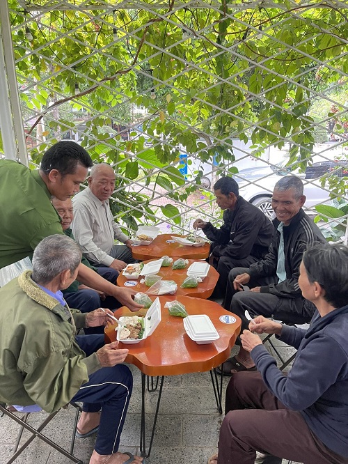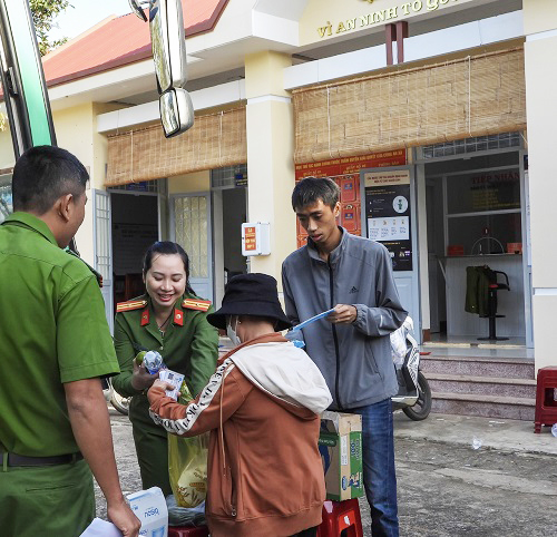 Cán bộ, chiến sĩ Công an huyện Krông Ana tận tình phục vụ chu đáo nước uống, xuất ăn trưa cho bà con chờ khám bệnh