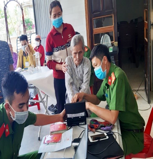 Một số hình ảnh CBCS đến tận nhà giúp người dân có hoàn cảnh đặc biệt khó khăn trong việc đi lại để thu nhận hồ sơ cấp Căn cước công dân