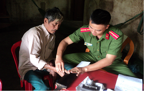 Thiếu úy Đặng Thái Hòa – cán bộ Công an huyện đang làm thủ tục