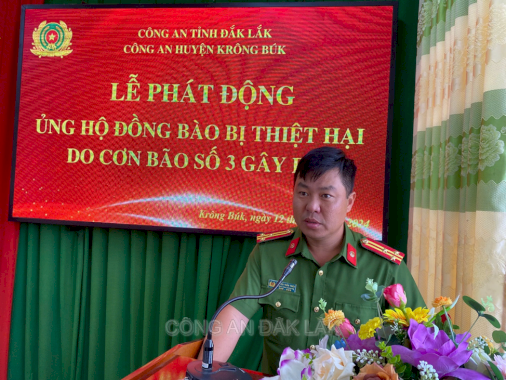 Phát biểu tại buổi lễ, đồng chí Thượng tá Nguyễn Trần Tuấn, Ủy viên Ban Thường vụ Huyện ủy, Bí thư Đảng ủy, Trưởng Công An an huyện kêu gọi cán bộ, chiến sỹ toàn lực lượng Công an huyện Krông Búk phát huy truyền thống đoàn kết, đạo lý “tương thân, tương ái”, “lá lành đùm lá rách”. Mỗi cán bộ, chiến sĩ bằng tình cảm, tấm lòng của mình chung tay động viên, hỗ trợ đồng bào vùng bị thiên tai.