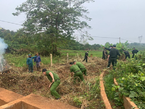Đoàn viên thanh niên Phòng Cảnh sát Cơ động và Công an huyện Krông Búk tích cực tham gia lao động