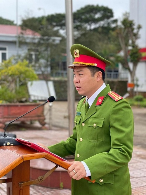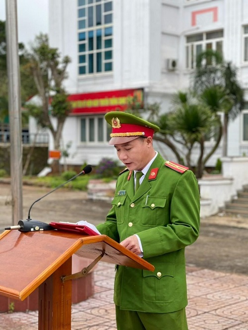Thay mặt ãnh đạo Công an huyện, đồng chí Trung tá Nguyễn Trần Tuấn – Trưởng Công an huyện phát lệnh mở đợt cao điểm tấn công, trấn áp tội phạm đảm bảo ANTT trước, trong và sau dịp Tết Nguyên Đán Quý Mão năm 2023.