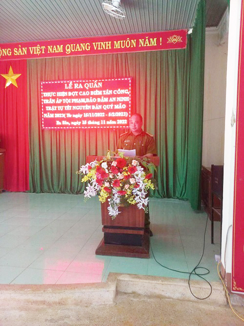 Ngay sau lệnh xuất quân, Công an huyện tổ chức diễu hành, biểu dương lực lượng và thực hiện cao điểm của hệ lưc lượng Cảnh sát giao thông về công tác đảm bảo an ninh, trật tự, an toàn giao thông, trật tự xã hội dịp tết Dương lịch, Tết Nguyên đán Quý Mão và các dịp lễ hội đầu xuân 2023.