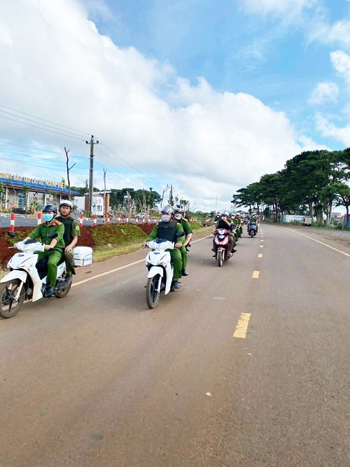 Cảnh sát giao thông Công an huyện Krông Búk triển khai lực lượng diễu hành
