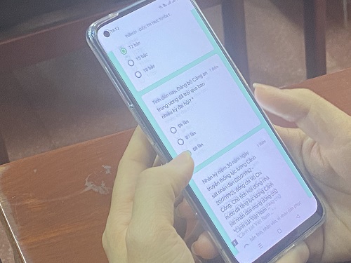 Người dự thi sử dụng máy vi tính hoặc điện thoại thông minh để trả lời câu hỏi trắc nghiệm, trực tuyến trên nền tảng Google form bằng cách nhấp vào đường link đã được liên kết hoặc quét mã QR Code bài thi được công bố.