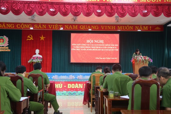 Sáng ngày 29/12/2023, Công an huyện Krông Năng tổ chức Hội nghị tổng kết công tác CCHC năm 2023 và phát động phong trào thi đua cung cấp dịch vụ công trực tuyến; số hóa hồ sơ, kết quả giải quyết thủ tục hành chính; ký kết giao ước thi đua đẩy mạnh cải cách hành chính năm 2024.