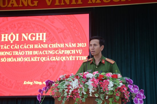 Năm 2023, bám sát sự chỉ đạo của Đảng ủy, lãnh đạo Công an tỉnh; cấp ủy, chính quyền địa phương, Công an huyện Krông Năng đã tập trung chỉ đạo, sâu sát công tác CCHC trong đơn vị; kịp thời phổ biến các chương trình, kế hoạch của các cấp, các ngành, nâng cao nhận thức của cán bộ, chiến sĩ về công tác CCHC.