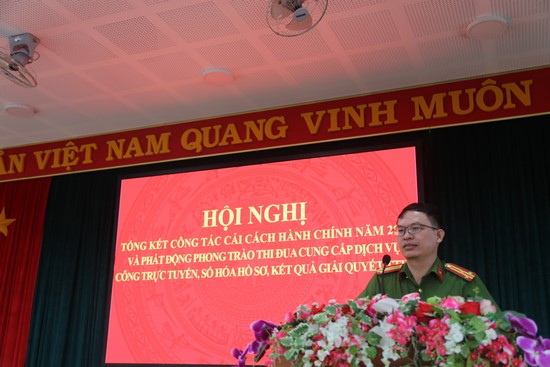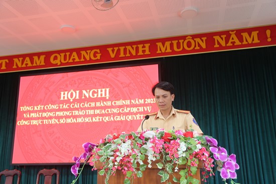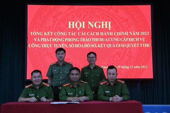Cũng tại Hội nghị, đồng chí Trung tá La Thị Khai – Đội trưởng Đội Tổng hợp phát động phong trào thi đua thực hiện cung cấp dịch vụ công trực tuyến, số hóa hồ sơ, kết quả giải quyết thủ tục hành chính trong toàn Công an huyện; đồng thời, tổ chức cho các Đội nghiệp vụ Khối Quản lý hành chính, Công an các xã, thị trấn ký kết giao ước thi đua đẩy mạnh CCHC năm 2024.