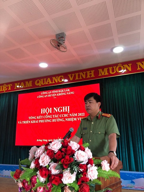 Đồng chí Trung tá Thái Văn Hà – Phó trưởng Công an huyện chủ trì; tham dự Hội nghị có các đồng chí lãnh đạo Công an huyện, chỉ huy các Đội nghiệp vụ; Trưởng, Phó trưởng Công an 12 xã, thị trấn trên địa bàn huyện. Năm 2022, bám sát sự chỉ đạo của Đảng ủy, lãnh đạo Công an tỉnh; cấp ủy, chính quyền địa phươnng, Công an huyện Krông Năng đã tập trung chỉ đạo, sâu sát công tác CCHC trong đơn vị; kịp thời phổ biến các chương trình, kế hoạch của các cấp, các ngành, nâng cao nhận thức của CBCS về công tác CCHC.