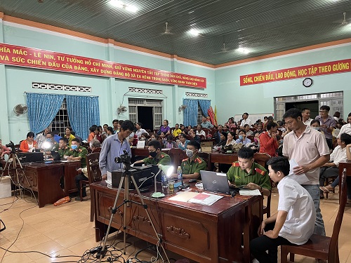 Cán bộ, chiến sỹ Công an huyện Krông Pắc tích cực làm việc vào ban đêm để đáp ứng nhu cầu rất đông người dân đến làm CCCD
