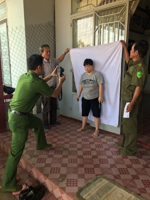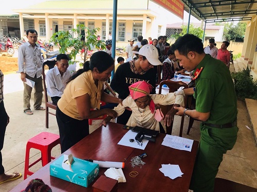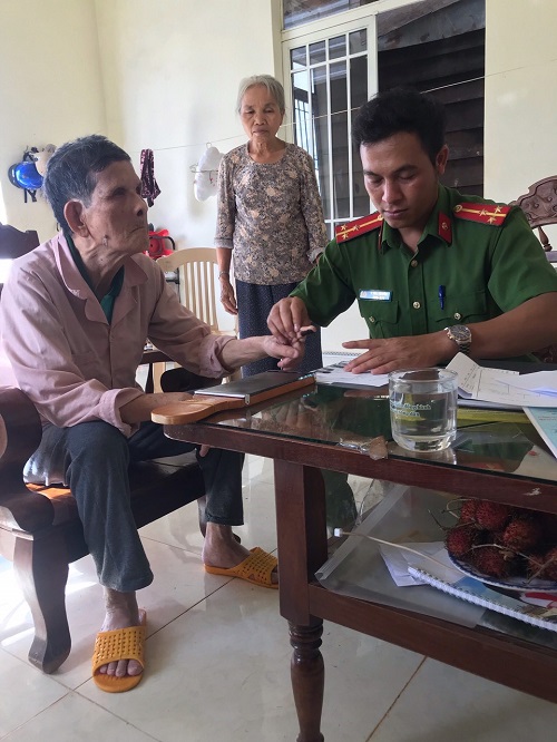Công an huyện Krông Pắc làm CMND tại nhà cho trường hợp ông Nguyễn Nhỏ (mắt bị hỏng không nhìn thấy gì), TD1, thị trấn Phước An