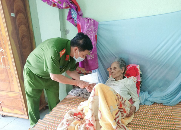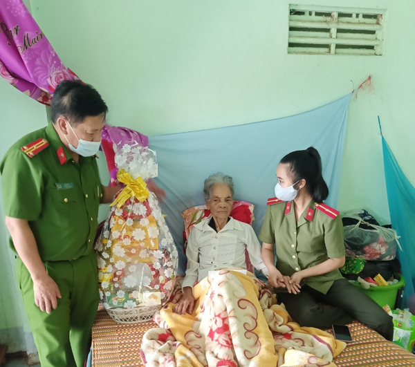 Nhân kỷ niệm 74 năm Ngày Thương binh, Liệt sỹ (27/7/1947-27/7/2021), Đoàn Thanh niên Công an huyện Lắk đã phối với Hội phụ nữ, Công đoàn Công an huyện tổ chức hoạt động đền ơn đáp nghĩa, thăm hỏi, tặng quà Mẹ Việt Nam Anh hùng H’Bai BKrông, sinh năm 1924, trú tại xã Ea Rbin, huyện Lắk.