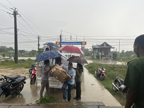 Đại diện lãnh đạo 2 cơ quan tặng quà trung thu cho Buôn kết nghĩa