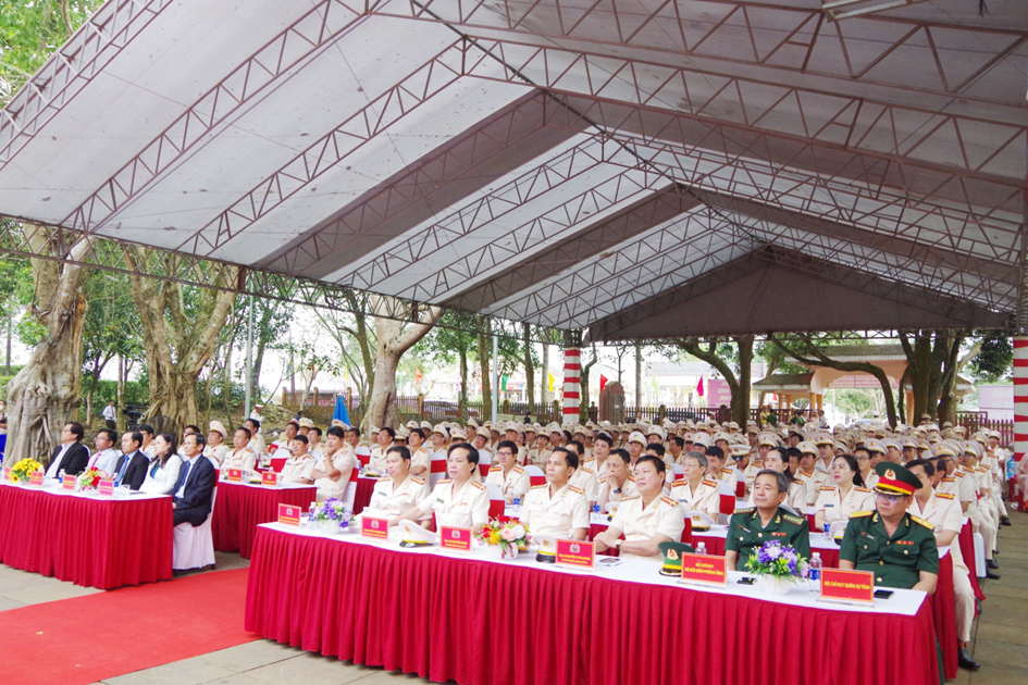Trong không khí trang nghiêm của buổi lễ, Đại tá Phan Thanh Tám – UVBTV Tỉnh ủy, Bí thư Đảng ủy, Giám đốc Công an tỉnh đã báo công, kính dâng lên Bác những thành tích của lực lượng Công an Phú Yên lập nên trong suốt chặng đường 75 năm qua. Thấm nhuần sâu sắc lời dạy của Bác, 75 năm qua, lực lượng Công an Phú Yên không ngừng tu dưỡng, rèn luyện, trau dồi đạo đức, tư cách người Công an cách mạng; thường xuyên duy trì và đẩy mạnh phong trào Công an nhân dân học tập, thực hiện Sáu điều Bác Hồ dạy, lập nên bao chiến công hiển hách, góp phần bảo vệ vững chắc an ninh Tổ quốc, xây dựng lực lượng Công an Phú Yên cách mạng, chính quy, tinh nhuệ, hiện đại, hoàn thành xuất sắc nhiệm vụ mà Đảng, Ngành và Nhân dân giao phó, vì cuộc sống bình yên và hạnh phúc của Nhân dân.