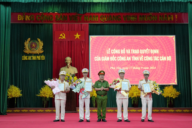 Lãnh đạo Công an tỉnh Phú Yên trao các quyết định về công tác cán bộ vào sáng 17.9