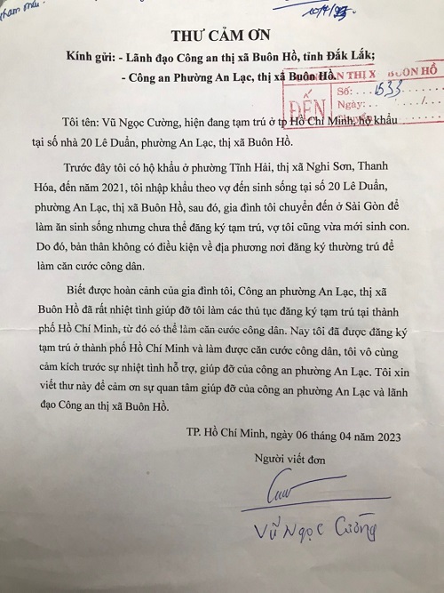 Thư cảm ơn của các công dân đã được Công an phường An Lạc hỗ trợ làm căn cước công dân