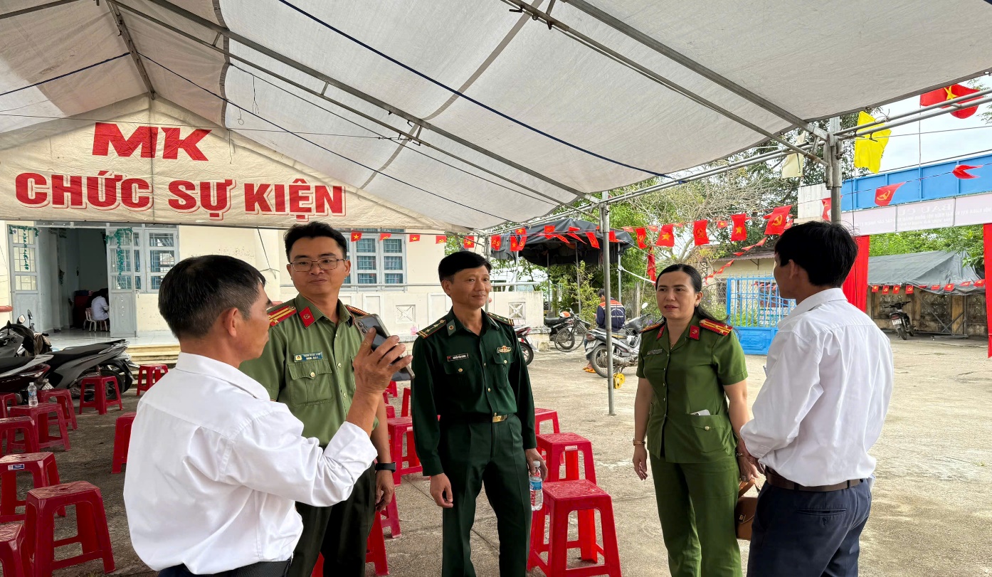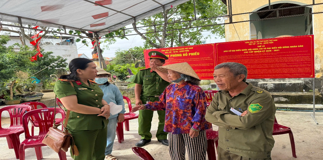 Thượng tá Nguyễn Thị Anh Hoa, Trưởng Công an phường kiểm tra khu vực bỏ phiếu