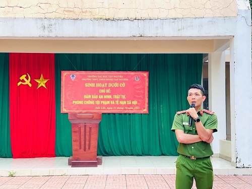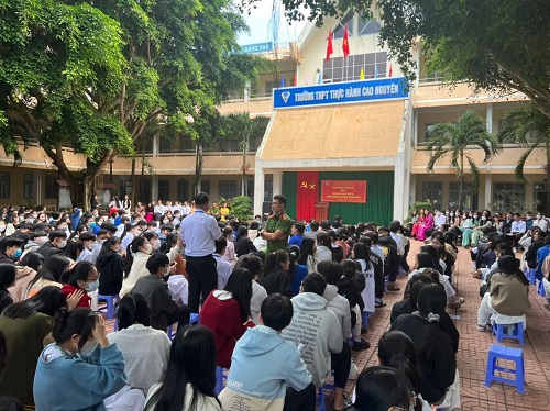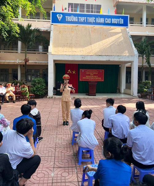 Sáng ngày 31/10/2022, nhằm nâng cao hiệu quả công tác đảm bảo an ninh trật tự trên địa bàn phường, Công an phường Ea Tam đã phối hợp với các đội nghiệp vụ Công an thành phố Buôn Ma Thuột và Ban Giám hiệu Trường THPT thực hành Cao Nguyên tổ chức tuyên truyền Luật Giao thông đường bộ, đảm bảo an ninh trật tự, phòng chống tội phạm và tệ nạn xã hội đến hơn 700 giáo viên, học sinh trường Trường THPT thực hành Cao Nguyên.