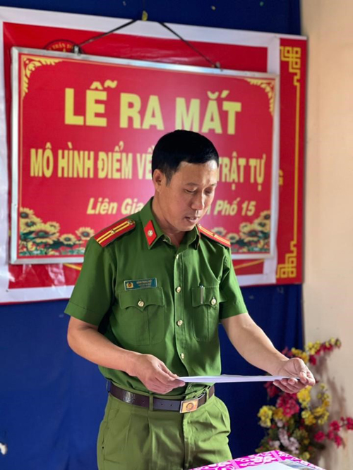 Đ/c Thiếu tá Bành Trọng Việt - Phó trưởng Công an phường phát biểu tại lễ ra mắt