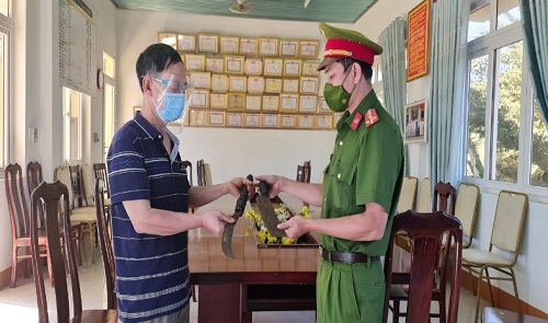 Hình ảnh người dân đến cơ quan Công an giao nộp vũ khí, vật liệu nổ