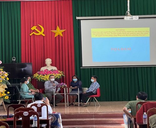 Cũng tại Hội nghị, để có cái nhìn toàn diện về mô hình “Phát huy sức mạnh tổng hợp của hệ thống chính trị, vận động các tầng lớp nhân dân, tổ chức, doanh nghiệp tham gia quản lý, giáo dục, giúp đỡ người tái hòa nhập cộng đồng”, Công an phường đã dành thời gian để tổ chức tọa đàm giữa chính quyền địa phương, doanh nghiệp và người tái hòa nhập cộng đồng. Qua đó, cho thấy sự quyết tâm của chính quyền địa phương, sự đồng tình, ủng hộ của các doanh nghiệp trong triển khai thực hiện mô hình và tinh thần cầu tiến, ý chí phấn đấu hướng tới một tương lai tốt đẹp hơn của người tái hòa nhập cộng đồng.
