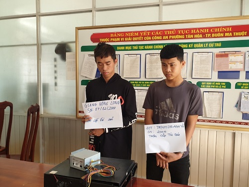 Ngay sau khi tiếp nhận trình báo, Công an phường đã cử cán bộ tiến hành xác minh. Từ những thông tin thu thập, kết hợp sử dụng các biện pháp nghiệp vụ, Công an phường xác định 02 đối tượng nghi vấn và tiến hành mời gọi lên cơ quan Công an làm việc đối với Trịnh Lưu Anh Vũ (sinh năm 2004, trú tại TDP7, phường Tân Hòa, thành phố Buôn Ma Thuột); Giang Hồng Long (sinh năm 2000, trú tại TDP4, phường Tân Hòa, thành phố Buôn Ma Thuột). Tại cơ quan Công an phường các đối tượng đã khai nhận toàn bộ hành vi phạm tội trộm cắp nói trên.