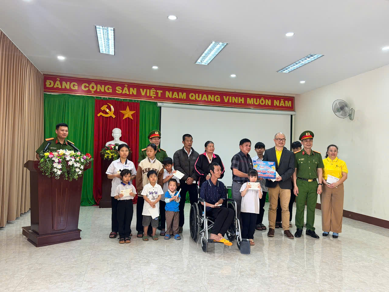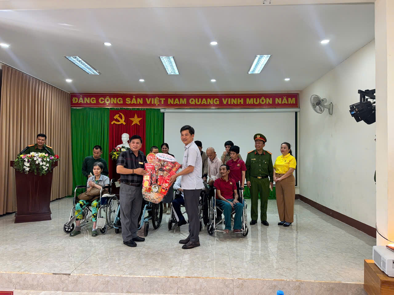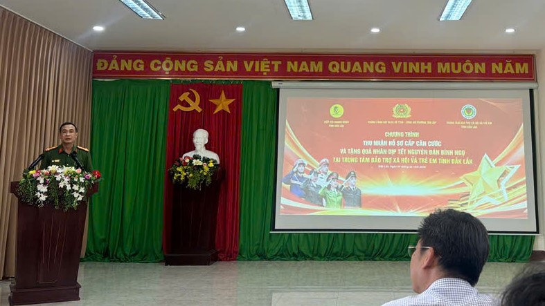 Tại buổi lễ, đồng chí Đại tá Trần Bình Hưng – Phó Giám đốc Công an tỉnh cùng đại diện Hội Doanh nhân tỉnh Đắk Lắk đã trao 41 phần quà Tết cho 41 công dân là nhân khẩu đặc biệt đang được chăm sóc, nuôi dưỡng tại Trung tâm Bảo trợ xã hội và Trẻ em tỉnh, với tổng trị giá 35 triệu đồng. Lãnh đạo UBND phường Tân Lập cũng trao quà và gửi lời thăm hỏi, động viên đến Trung tâm.
