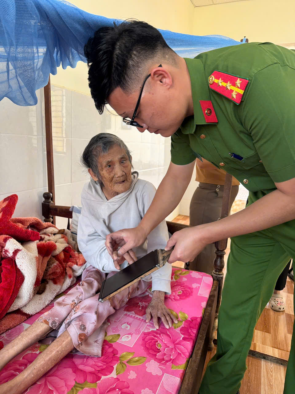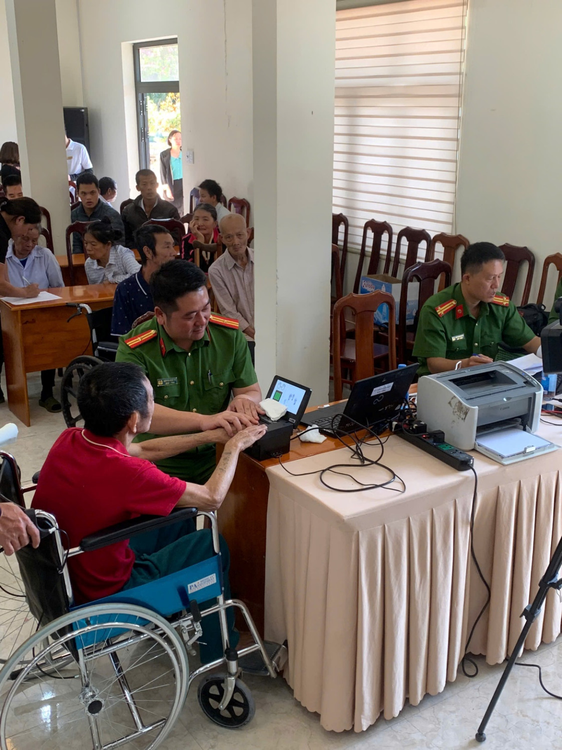 Ngay sau chương trình trao quà, cán bộ, chiến sĩ Công an phường Tân Lập phối hợp với Phòng CSQLHC về TTXH Công an tỉnh tổ chức thu nhận hồ sơ cấp Căn cước cho 41 công dân là nhân khẩu đặc biệt ngay tại Trung tâm Bảo trợ xã hội. Hoạt động này góp phần giúp các công dân từng bước “có tên, có tuổi, có hồ sơ pháp lý”, phục vụ hiệu quả công tác an sinh xã hội và các nhiệm vụ chính trị quan trọng như bầu cử đại biểu Quốc hội và Hội đồng nhân dân các cấp.