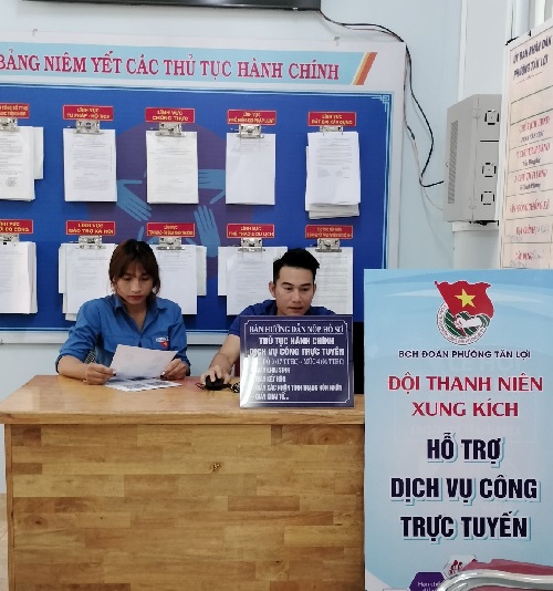 Đoàn Thanh niên phường Tân Lợi hướng dẫn công dân thực hiện dịch vụ công trực tuyến tại bộ phận một cửa UBND phường Tân Lợi