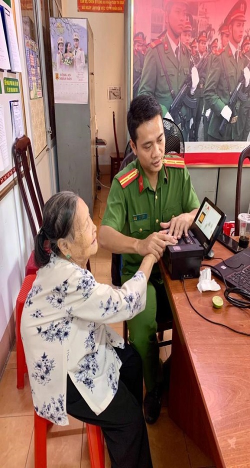 CBCS Công an phường giúp đỡ người lớn tuổi khi đi làm thủ tục cấp CCCD