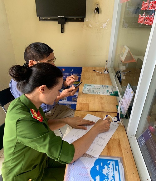 Đồng chí Trần Thị Thanh Thúy – Phó trưởng Công an phường Thiện An trực tiếp hướng dẫn TTHC cho người dân