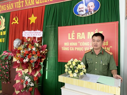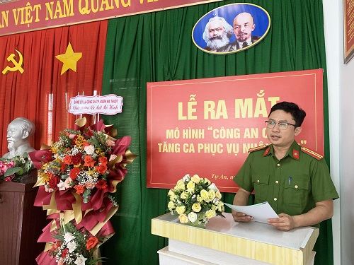 Phát biểu tại buổi Lễ, đồng chí Thượng tá Lê Văn Mạnh – Phó trưởng Công an thành phố nhấn mạnh: Việc thực hiện mô hình “Công an cơ sở tăng ca phục vụ Nhân dân” của lực lượng Công an phường Tự An sẽ tạo sức lan tỏa về những hình ảnh đẹp, gần gũi, thân thiện của cán bộ, chiến sĩ Công an trong lòng Nhân dân, góp phần xây dựng tiền đề thực tiễn trong công tác xây dựng Công an phường kiểu mẫu về an ninh trật tự, văn minh đô thị, phong trào toàn dân bảo vệ an ninh Tổ quốc. Trong thời gian tới, đề nghị Công an phường tranh thủ sự quan tâm, ủng hộ của các cấp ủy Đảng, Chính quyền cùng tham gia, phối hợp, hỗ trợ xây dựng thành công và nhân rộng mô hình “Công an cơ sở tăng ca phục vụ Nhân dân”, phân công cụ thể CBCS tăng ca hằng ngày, niêm yết công khai thông tin để người dân liên hệ; cần có sơ kết, tổng kết đánh giá và đề ra những cách làm hay, hiệu quả, phối hợp chặt chẽ với chính quyền địa phương và các đội nghiệp vụ Công an thành phố đẩy mạnh công tác tuyên truyền, tăng cường vận động Nhân dân tích cực tham gia phong trào toàn dân bảo vệ an ninh Tổ quốc, phòng ngừa, đấu tranh có hiệu quả với các loại tội phạm, tệ nạn xã hội, góp phần kéo giảm bền vững các loại tội phạm, tệ nạn xã hội, bảo đảm an ninh, trật tự ngay tại địa bàn cơ sở, góp phần xây dựng xã hội trật tự, kỷ cương, an toàn và văn minh”.