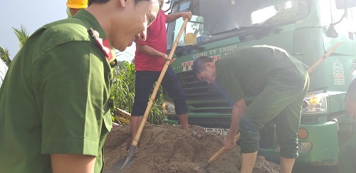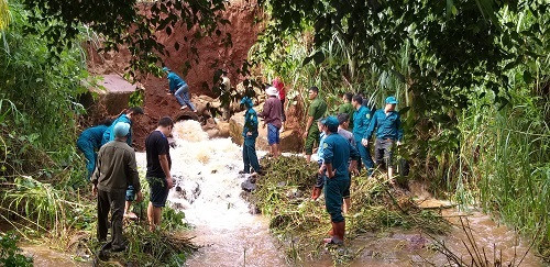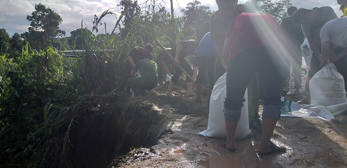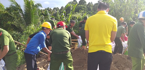 Lực lượng Công an thành phố Buôn Ma Thuột đã có mặt kịp thời phối hợp các lực lượng gia cố bảo bệ đọa đê bị sạt lở
