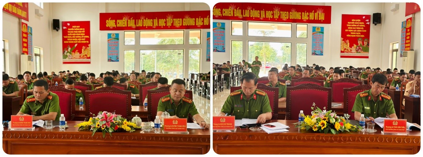 Tham dự Hội nghị có đồng chí Thượng tá Huỳnh Thanh Bình - Bí thư Đảng ủy, Trưởng Công an thành phố, chủ trì Hội nghị; các đồng chí Phó Trưởng Công an thành phố; cùng 180 đồng chí là tập thể Chỉ huy 04 đội nghiệp vụ thuộc khối Cảnh sát điều tra, đội CSGT-TT, đội Tham mưu; Đội trưởng các đội nghiệp vụ; Trưởng Công an phường, Phó trưởng Công an phường phụ trách công tác phòng chống tội phạm và công tác Quản lý hành chính; Tổ trưởng tổ Cảnh sát phòng, chống tội phạm, tổ Cảnh sát khu vực Công an 13 phường; Trưởng Công an xã, Phó trưởng Công an xã phụ trách công tác phòng, chống tội phạm Công an 08 xã cùng 100% CBCS được giao nhiệm vụ trực tiếp tham mưu các mặt công tác NCVB của lực lượng Cảnh sát tại các đơn vị.
