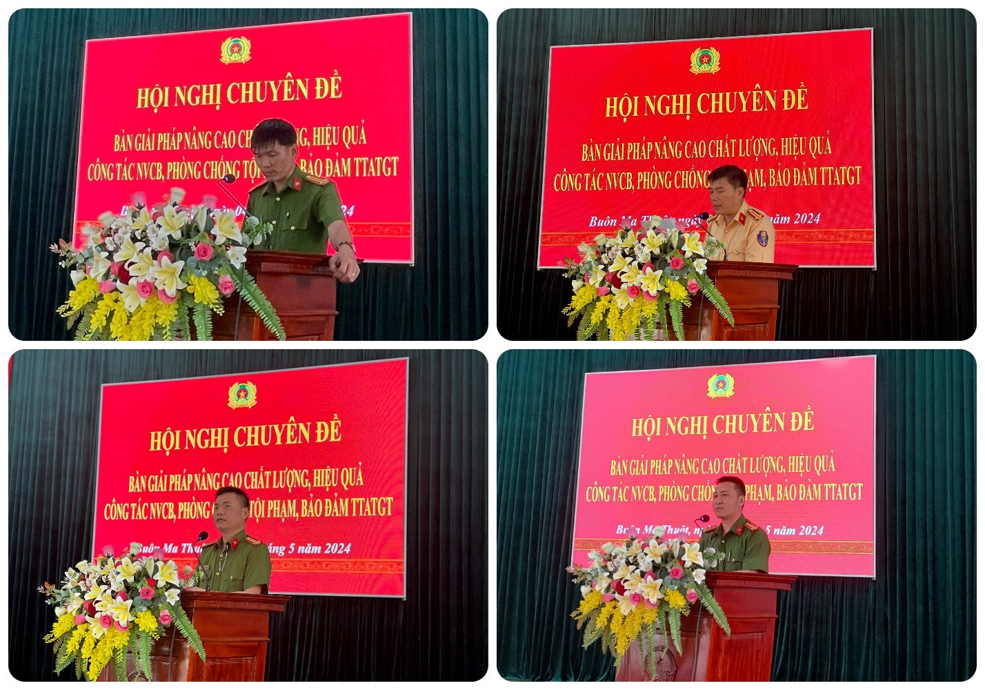 Với tinh thần nhìn thẳng sự thật, không ngừng đổi mới, nâng cao chất lượng hiệu quả các mặt công tác nghiệp vụ cơ bản, giải pháp kìm giảm tội phạm hình sự, tai nạn giao thông, các đồng chí đại biểu đã nêu cao tinh thần trách nhiệm, tập trung trí tuệ, tích cực nghiên cứu, tham gia 05 ý kiến tham luận và lắng nghe 01 phát biểu của đồng chí Phó trưởng Công an thành phố, tập trung đánh giá một cách sâu sắc, toàn diện tình hình, kết quả công tác phòng, chống tội phạm hình sự, kiềm giảm tai nạn giao thông và những vấn đề mới về công tác nghiệp vụ trong thời gian qua; làm rõ những tồn tại, hạn chế, khó khăn, vướng mắc, nguyên nhân; xác định rõ trách nhiệm trong quản lý địa bàn, đối tượng; đồng thời trao đổi, chia sẻ những kinh nghiệm, sáng kiến, giải pháp nhằm thực hiện thắng lợi nhiệm vụ công tác trọng tâm năm 2024.