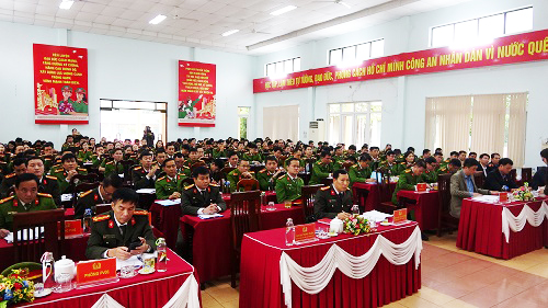 Đồng chí Đại tá Lê Văn Tuyến - Uỷ viên Ban Thường vụ Tỉnh ủy, Giám đốc Công an tỉnh phát biểu chỉ đạo Hội nghị