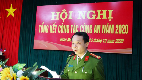Ngày 22/12/2020, Công an thành phố Buôn Ma Thuột tổ chức Hội nghị tổng kết công tác Công an năm 2020 và triển khai nhiệm vụ công tác Công an năm 2021. Đồng chí Đại tá Lê Văn Tuyến - Uỷ viên Ban Thường vụ Tỉnh ủy, Giám đốc Công an tỉnh; đồng chí Từ Thái Giang - Uỷ viên Ban Thường vụ Tỉnh ủy, Bí thư Thành uỷ; đồng chí Vũ Văn Hưng - Uỷ viên Ban Thường vụ Thành ủy, quyền Chủ tịch UBND thành phố dự và chỉ đạo Hội nghị; tham dự Hội nghị có đại diện lãnh đạo các phòng nghiệp vụ thuộc Công an tỉnh và các đồng chí lãnh đạo các phòng, ban, ngành, đoàn thể thuộc UBND thành phố Buôn Ma Thuột.