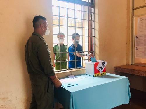 Vào lúc 14h00 ngày 23/5/2021, Nhà tạm giữ Công an thị xã Buôn Hồ phối hợp với Tổ bầu cử của UBND phường An Bình tổ chức cho 14 người bị tạm giữ, người bị tạm giam được bỏ phiếu bằng cách sử dụng Hòm phiếu phụ đặt tại Cơ quan quản lý tạm giữ, tạm giam Công an thị xã. Lực lượng Cảnh sát thi hành án hình sự và hỗ trợ tư pháp đã tiến hành trích xuất, dẫn giải, bảo vệ người bị tạm giữ, người bị tạm giam ra khu vực bầu cử để bầu cử Đại biểu Quốc Hội khóa XV và đại biểu Hội đồng nhân dân các cấp tỉnh Đắk Lắk nhiệm kỳ 2021 – 2026 theo đúng trình tự, đúng quy định của pháp luật.