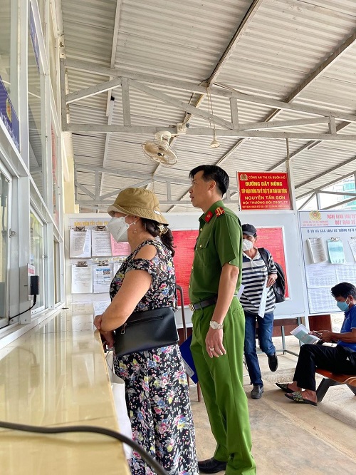 Đ/c Trung tá Nguyễn Danh Bằng – Trưởng Công an thị xã Buôn Hồ trực tiếp kiểm tra, theo dõi quá trình giải quyết thủ tục hành chính cho người dân