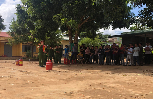 Dưới sự hướng dẫn của Đội Cảnh sát PCCC và CNCH – Công an thị xã Buôn Hồ các học viên đã được thực hành cách sử dụng các phương tiện bình bột, bình CO2 để dập tắt đám cháy và cách thức xử lý nhanh các tình huống có thể xảy ra.