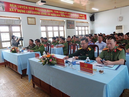 Hội nghị vinh dự được đón tiếp đồng chí Đại tá Nguyễn Văn Bôn – Phó Bí thư Đảng ủy, Phó Giám đốc Công an tỉnh; đồng chí Đặng Gia Duẩn – Phó Bí thư, Chủ tịch UBND thị xã cùng Lãnh đạo Phòng Tham mưu Công an tỉnh và Lãnh đạo một số đơn vị trong khối nội chính của thị xã đến tham dự.