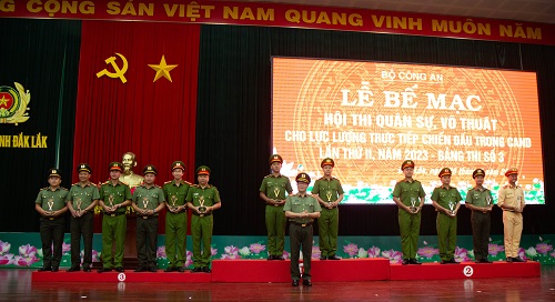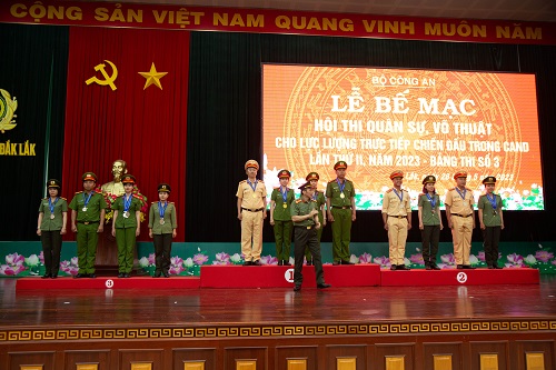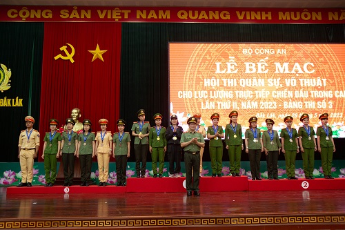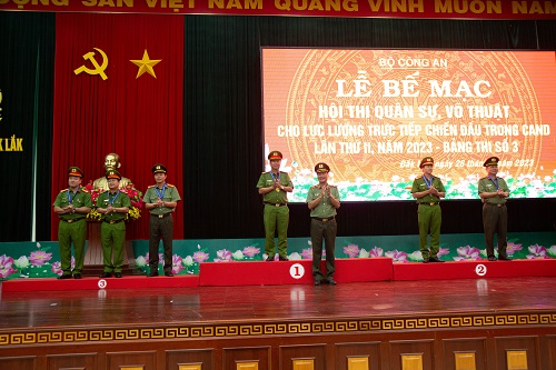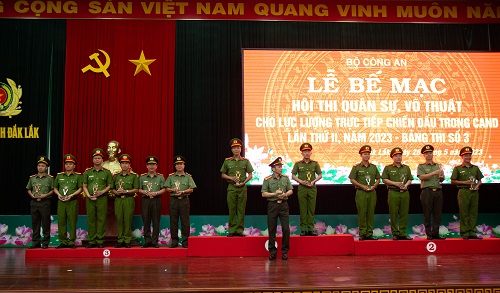 Tại Lễ bế mạc Bảng thi số 3 của Hội thi, với những thành tích xuất sắc đạt được ở các nội dung thi quân sự và võ thuật, Công an tỉnh Đắk Lắk đã được Ban tổ chức trao tặng giải Nhất toàn đoàn. Giải Nhì toàn đoàn được trao cho Công an 3 tỉnh: Bình Phước, Bình Dương và Đắk Nông. Giải Ba toàn đoàn thuộc về Công an 4 tỉnh: Gia Lai, Quảng Bình, Thừa Thiên Huế và Quảng Ngãi. Giải khuyến khích toàn đoàn được trao cho Công an 6 tỉnh: Phú Yên, Khánh Hòa, Quảng Nam, Quảng Trị, Bình Thuận và TP. Đà Nẵng. Ngoài ra, Ban tổ chức còn trao các giải Nhất, Nhì, Ba cho những tập thể, cá nhân đạt giải ở từng nội dung thi. Sau vòng loại Bảng thi số 3 này, 8 đội tuyển đạt thành tích toàn đoàn xuất xắc sẽ tiếp tục tham gia thi Vòng chung kết Hội thi quân sự, võ thuật cho lực lượng trực tiếp chiến đấu trong CAND lần thứ 2 năm 2023 tại tỉnh Quảng Nam trong thời gian tới./.