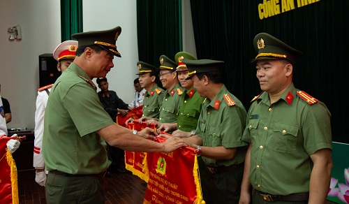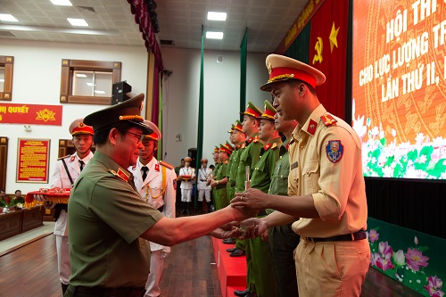 Thiếu tướng Lê Hồng Hiêp trao Huy chương Kỷ niệm cho Thiếu tướng Lê Vinh Quy. Đơn vị đăng cai tổ chức Hội thi