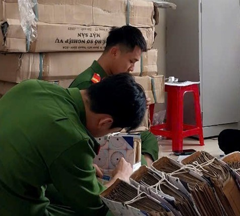 Cán bộ Phòng hồ sơ nghiệp vụ khẩn trương hoàn thành công tác kiểm đếm, thống kê hồ sơ, sổ sách do Công an cấp huyện bàn giao, đảm bảo tiến độ đề ra.