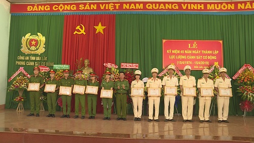 Trải qua các giai đoạn, thời kỳ công tác, vượt qua nhiều khó khăn, gian khổ, hy sinh, lực lượng Cảnh sát cơ động của Công an Đắk Lắk đã hoàn thành xuất sắc nhiệm vụ được giao, vinh dự được Đảng, Nhà nước và Bộ Công an tặng thưởng nhiều danh hiệu cao quý. Trong đợt này, có 15 cán bộ, chiến sĩ thuộc Phòng Cảnh sát cơ động Công an tỉnh có thành tích xất sắc trong công tác, chiến đấu được UBND tỉnh và Giám đốc Công an tỉnh tặng Bằng khen, Giấy khen./.